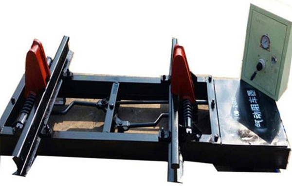 阻車器為井口操車系統(tǒng)配套設備,是斜巷阻車裝置??蓡为氃谏舷聢鍪褂?,也可配套斜巷跑車防護裝置使用,以形成國家安監(jiān)部門要求的“一坡三擋”防護系統(tǒng)。該設備采用氣動控制箱控制,易操作且不用電,無安全隱患,能夠長期工作無故障。